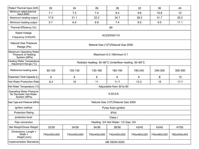 Gas Boiler Parameters